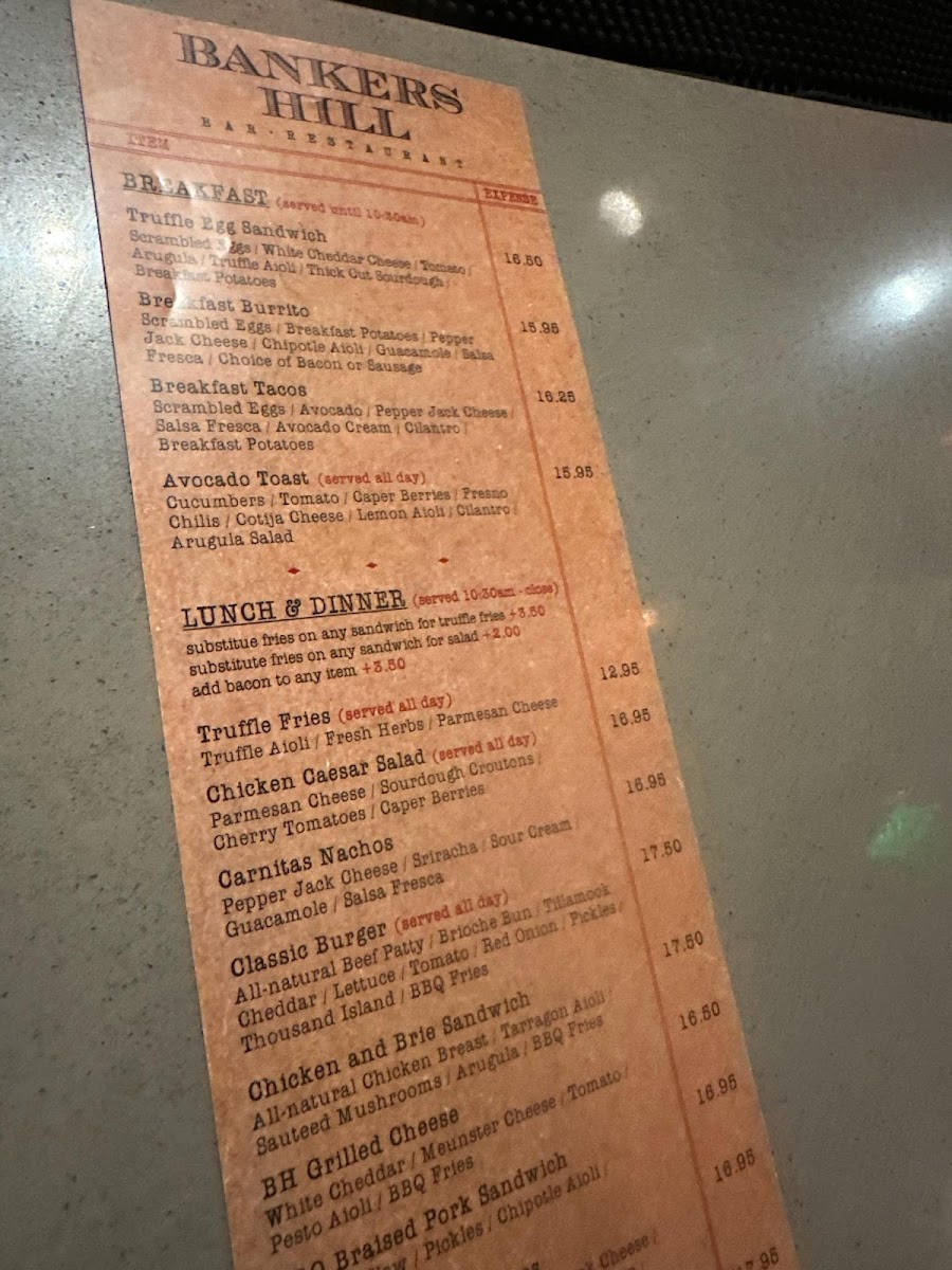 With quick bites like Yogurt Parfait ($9.75) and a variety of enticing boxes, including the Charcuterie Box ($11.95), there’s something for everyone. Customers rave about the attentive service and quality food, making Bankers Hill a standout destination for both traveling and dining.